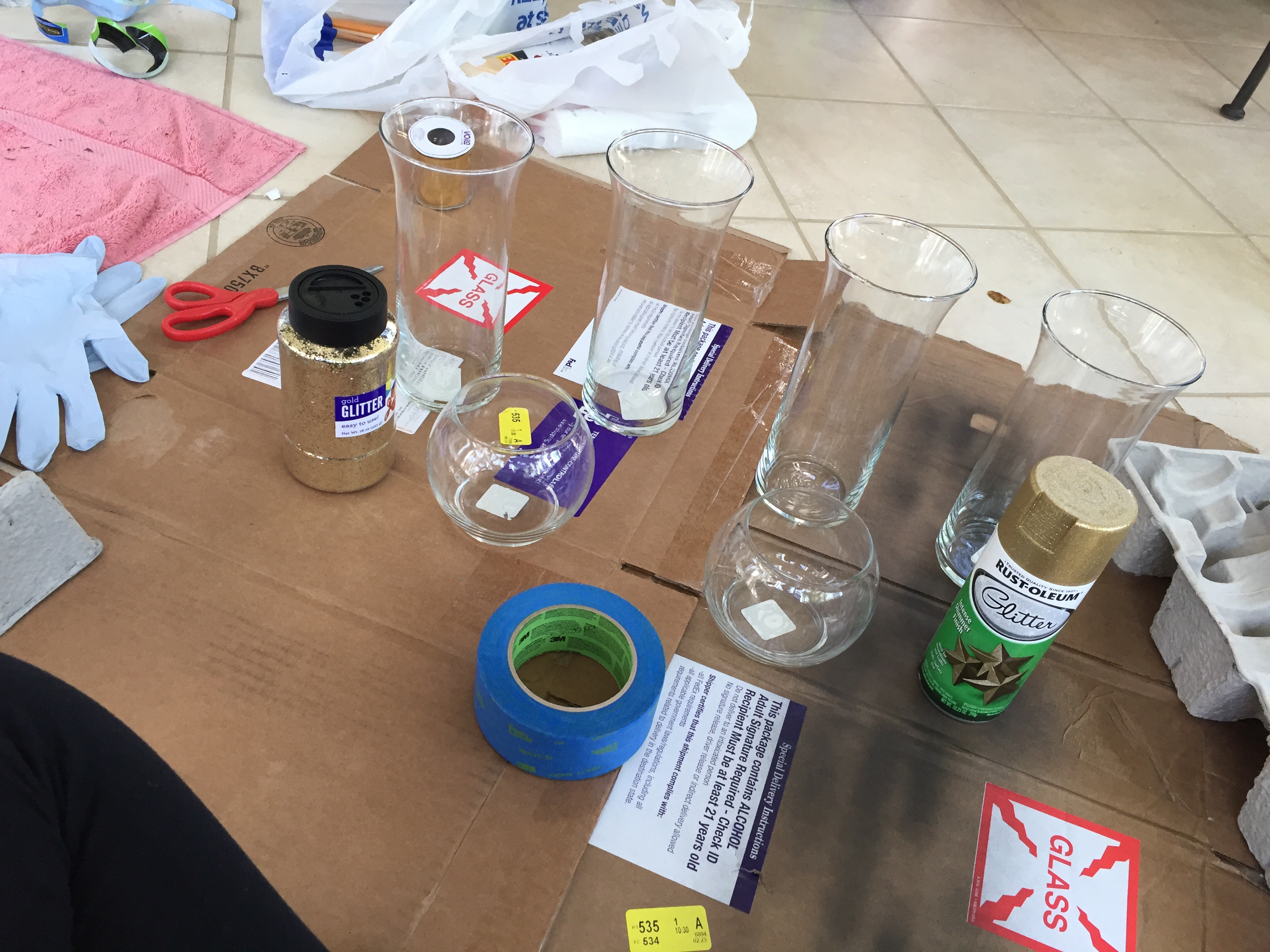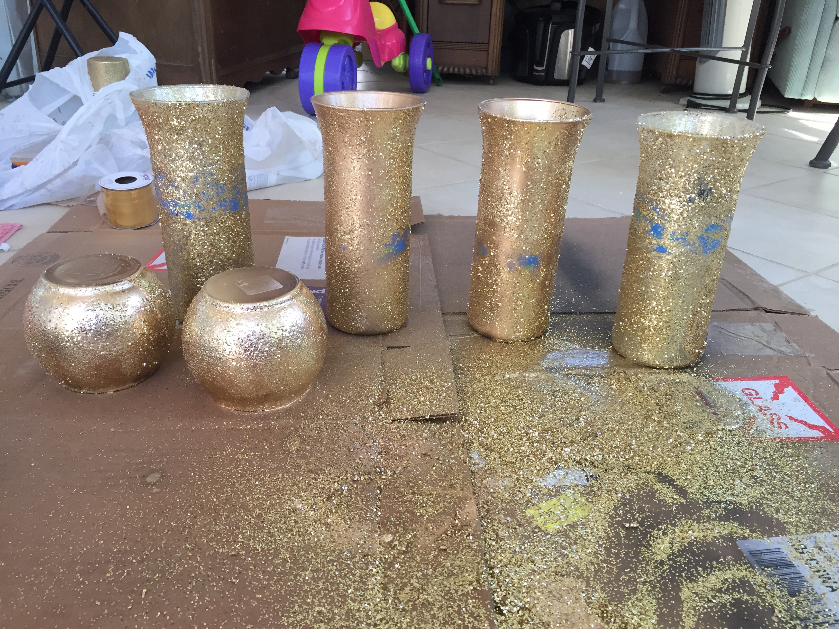I bought several vases from the dollar store and some spray paint with some glitter